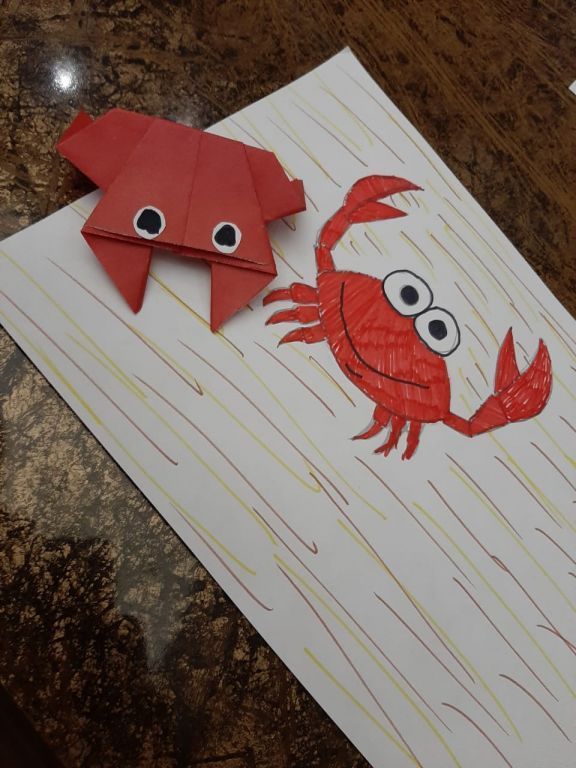 Задачи:познакомить детей с морским крабом, воспитывать интерес к морским обитателям;развивать мелкую моторику пальцев рук;развивать художественно-эстетический вкус;воспитывать интерес к конструированию, желание сделать красивую поделку.
